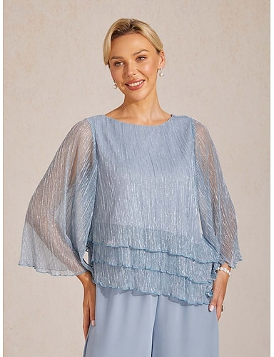 Pentru femei Topuri din șifon Plisată Multistratificat Metalic Elegant Lungime Manșon 3/4 Stil Nautic Topuri obișnuite Invitat la nunta Verde Deschis Vară Primăvară Toamnă