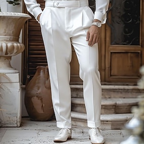 Bărbați Pantaloni Costume Pantaloni casual Pantaloni de costum Buzunar frontal Picior drept Simplu Confort Respirabil Lungime totală Nuntă În aer liber Petrecere Elegant Modă Negru Alb