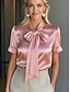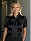 Pentru femei Cămașă din satin Cămașă de Costum Bluză Cu Șiret Culoare solidă Elegant Stilat De Bază Manșon Lung Gât cravată Topuri obișnuite Zilnic În aer liber Birou Negru Alb Fucsia Gri Primăvar