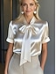 Pentru femei Cămașă din satin Cămașă de Costum Bluză Culoare solidă Elegant Modă Casual Manșon scurt Răsfrânt Topuri obișnuite Zilnic Birou Muncă Albastru piscină Negru Alb Galben Gri Vară Primăvară