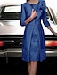 Coloană Teacă Lungime Genunchi Rochie pentru invitata de nunta Rochie Mama Miresei Lungime Manșon 3/4 Bijuterie Epocă Plus Size Invitat la nunta Satin Dantelă Rochii jacheta cu Aplică
