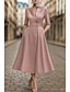 Linia -A Lungime Podea Rochii Tip Cămașă Rochie pentru invitata de nunta Rochie formala Rochie Mama Miresei Manșon Jumate Guler Cămașă minimalist Oficial Invitat la nunta toamnă Satin cu Arc Pliuri