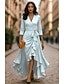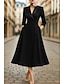 Linia -A Asimetric Rochii de seara Elegant Bloc de Culoare Mătăsos Lungime Manșon 3/4 Guler Cămașă Cravată neagră Buzunar Satin cu Buzunar