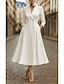 Rochie de smoking Linia -A Oficial Invitat la nunta Satin Elegant minimalist Lungime Manșon 3/4 Lungimea ceaiului Rever Cu Doi Nasturi