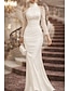 Rochii de mireasă formale pentru logodnă tip sirenă fără umăr cu mâneci lungi cu tren scurt din satin cu appliques de culoare solidă