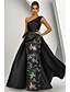 Linia -A Mătura Trenă Rochii de seara Rochie formală Elegant Zilnic Mătăsos Fără manșon Pe Umăr Nuntă Oficial Satin Jaquard cu Pliuri