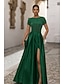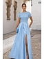 Linia -A Lungime Podea Rochii de bal Rochii de seara Rochie De Bal Rochie formală Elegant strălucitoare Split de înaltă Manșon scurt Pătrat Crăciun Oficial Buzunar Satin cu Pliuri