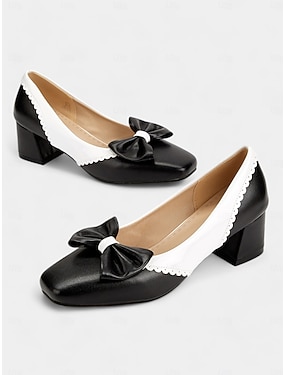 pantofi cu toc bloc alb-negru de damă cu detaliu fund – pantofi cu toc joasă de inspirație vintage pentru birou, ocazii casual și îmbrăcate