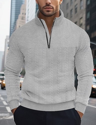 Bărbați Hanorca Hanorac din fleece Trage pe dreapta Hanorac cu fermoar sfert Tricotaj cu nervuri Caisă Negru Verde Militar Bleumarin Gri Deschis Guler în picioare Simplu Texturat Sporturi & Exterior