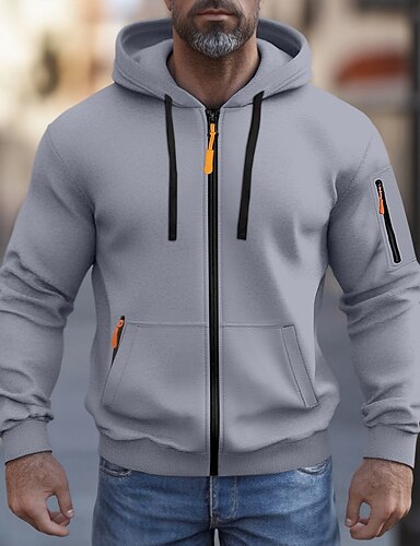 Bărbați Hanorac cu Glugă Hanorac cu fermoar complet Negru Bleumarin Kaki Gri Deschis Capișon Simplu Cordon Buzunar Sporturi & Exterior Zilnic Concediu Poliester Șic Stradă De Bază Casual Toamnă Iarnă