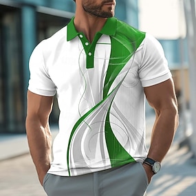 Bărbați Abstract Γραμμή Polo Manșon scurt Tricouri de polo Rever Ocazional afaceri Afaceri Îmbrăcăminte Atletică Imprimare 3D Nasturi Vară Roșu-aprins Albastru piscină Trifoi