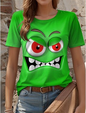 tricou dama elegant imprimeu casual maneca scurta topuri obisnuite decolteu zilnic alb rosu verde vara