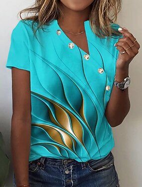Pentru femei Tricou Nasturi Imprimeu Grafic De Bază Manșon scurt În V Topuri obișnuite Zilnic Sfârșit de săptămână Albastru piscină Roz Îmbujorat Trifoi Gri