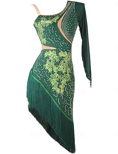 dans salsa rochie de dans latino cu ciucuri cu franjuri cristale / strasuri antrenament de performanta pentru femei chinlon cu maneca lunga