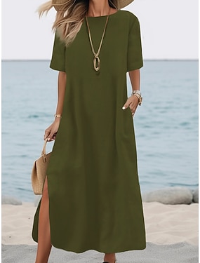 Pentru femei Rochie Maxi 100% Βαμβάκι Rochie de Vară Rochii de Caftan Rochie albă De Bază Casual Zilnic În aer liber Potrivire Largă Simplu Manșon Jumate Stil Nautic Verde Militar Negru Alb Roșu Vin