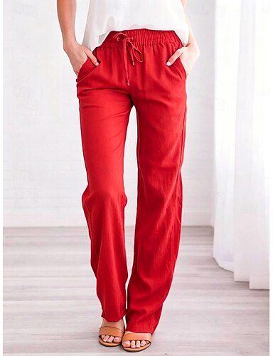 Pentru femei In din bumbac artificial Pantaloni de vară Pantaloni Casul Zilnic Lungime totală Natural Simplu Cordon Buzunare laterale Respirabilitate Comfortabil Inelastic Ieșire Sfârșit de săptămână