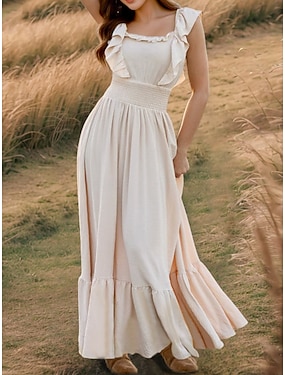 Pentru femei Rochie Maxi Rochie casual Elegant Epocă Modă În aer liber Plajă Vacanță Fit regulat Simplu Manșon scurt De Pe Umăr Albastru piscină Roșu-aprins Trifoi Caisă Vară Primăvară