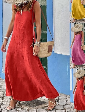 Pentru femei Rochie Lunga Rochie Maxi Rochie Maxi In din bumbac artificial Rochie de schimb Rochie de Vară Rochie casual Modă În aer liber Petrecere Concediu Fit regulat Simplu Manșon scurt Bretele