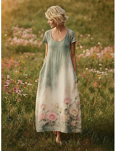 Pentru femei Rochie Maxi lungă Rochie Boho Rochie casual Epocă Zilnic În aer liber Plajă Potrivire Largă Floral Manșon scurt În U Trifoi Vară Primăvară