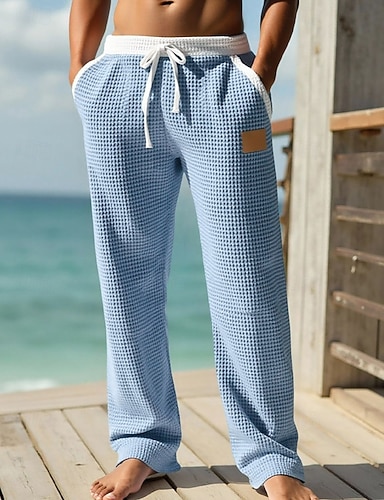Bărbați vafelă Pantaloni Pantaloni casual Pantaloni largi Pantaloni Waffle Cordon Bloc Culoare Confort Lungime totală Casual Zilnic În aer liber Modă Stil Clasic Negru Bleumarin Micro-elastic