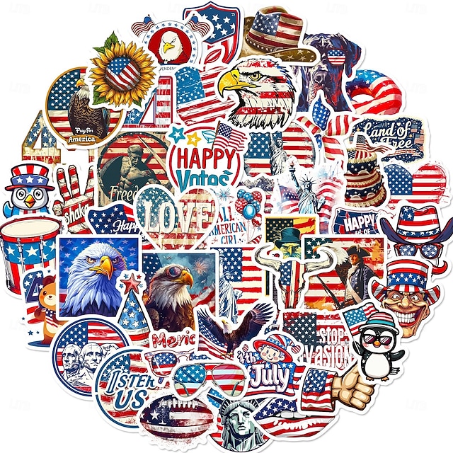 250 buc autocolante pentru sărbătoarea Zilei Independenței Americii, caiet graffiti DIY, skateboard, valiză, autocolante impermeabile, 5 pachete a câte 50 de hârtie artistică#18141008