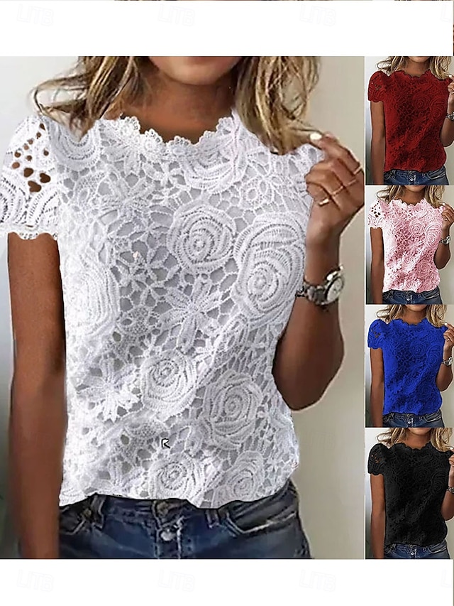 Pentru femei Topuri de vară Bluză Varful ochiului Topuri din dantela Zdrobit Dantelă Peteci Simplu Elegant Epocă femei Fără manșon Stil Nautic Topuri obișnuite Zilnic Muncă Concediu Albastru piscin #10562137