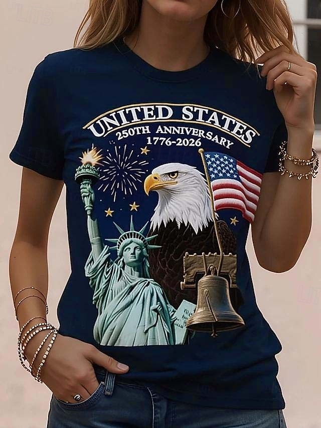 Ziua Independenței American Aniversare Patriotic T Shirt pentru Femei Grafic Național Steag Vintage Elegant Clasic Mâneci Scurte Gat Rotund Zilnic Weekend Print Negru #12466858
