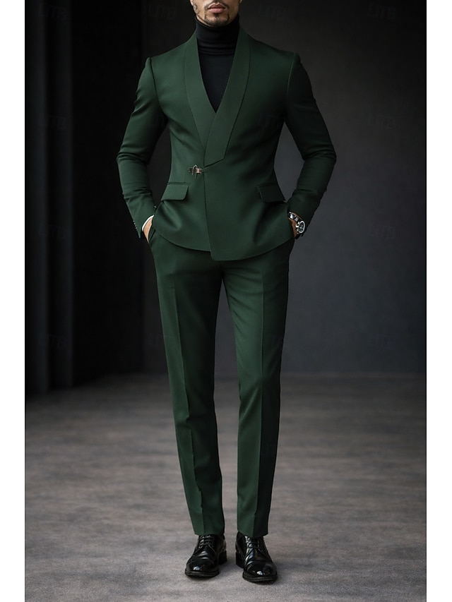 A bărbaților Smoking Costume Petrecere Nuntă Negru Albastru regal Primăvară, toamnă, iarnă, vară Costum Șap de rețea Modă Afacere Mată Fit standard Set 2 piese Un singur rând, un nasture #13030351