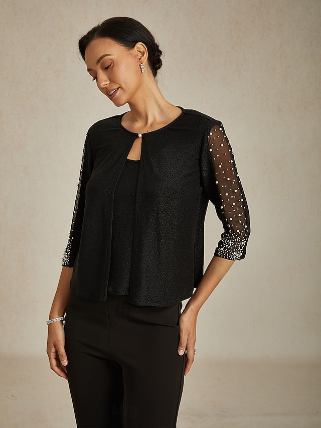 Pentru femei Topuri imbracate Topuri de seară Strălucire Ștrasuri Stras Elegant Petrecere Lungime Manșon 3/4 Stil Nautic Muncă Invitat la nunta Îmbrăcăminte de seară de petrecere Negru Primăvar #13138589