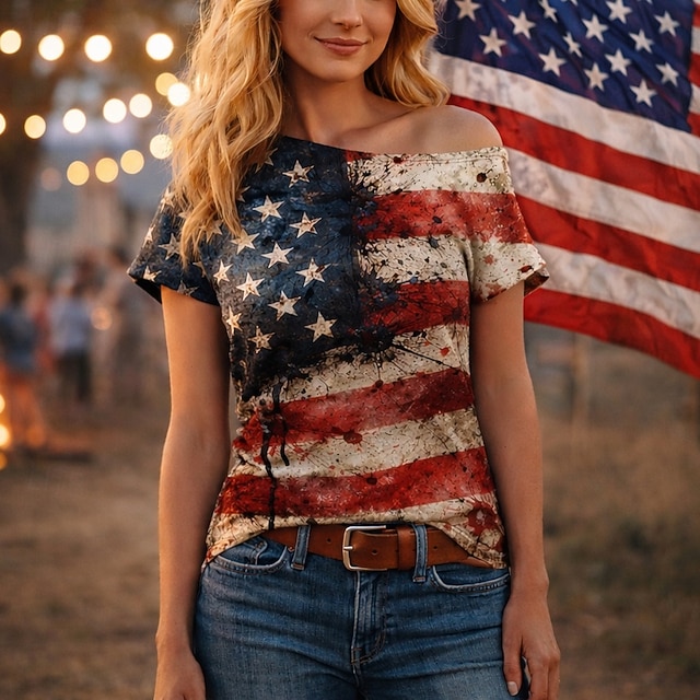 A 250-a aniversare a SUA Retro / vintage Anii 1980 Lungime scurtă Tricou Pe Umăr Mâneci scurte Drapel USA Costume de fancy Pentru femei 4 iulie Ziua Independenței Adulți Tricou#13431350