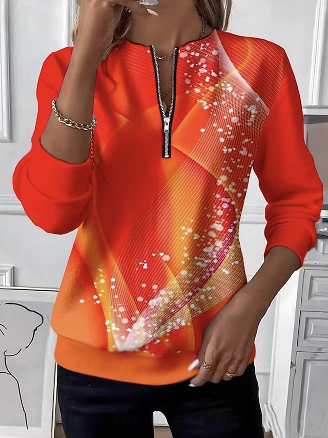 Pentru femei Hanorac pulover Hanorace cu fermoar Fermoar Imprimeu Grafic Abstract Modă Casual Manșon Lung Stil Nautic Topuri obișnuite Stradă Zilnice Galben Portocaliu Maro Primăvară Toamnă Iarnă #14124264