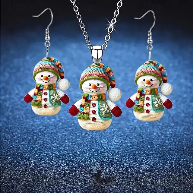 colier și cercei pandantiv om de zăpadă | bijuterii de sărbători festive pentru femei | accesorii de craciun#14141021