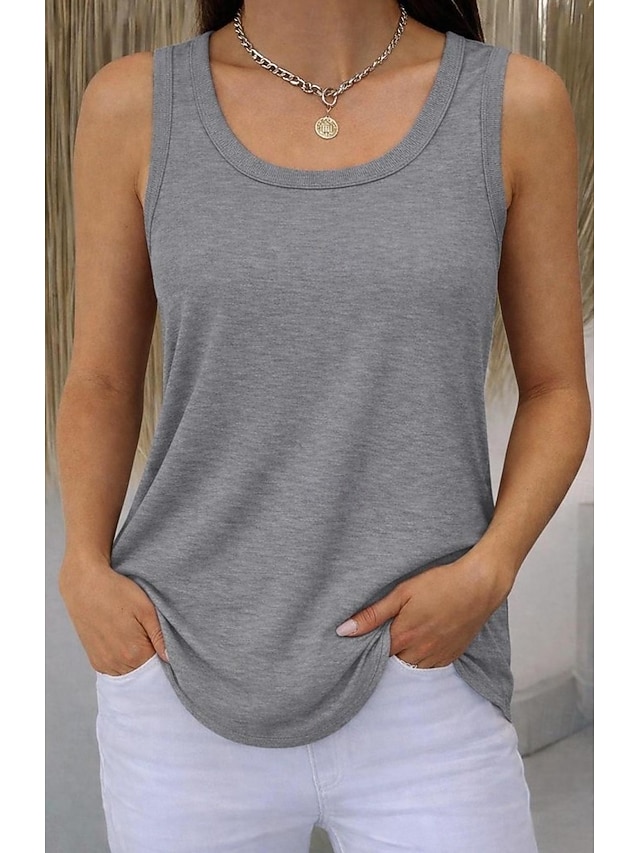 Pentru femei Mărime Plus Tricou Bluză Culoare solidă Elegant Epocă Stilat Fără manșon În U Topuri lungi Zilnic Sport Ieșire Negru Alb Bleumarin Mov Trifoi Vară Primăvară #15925070