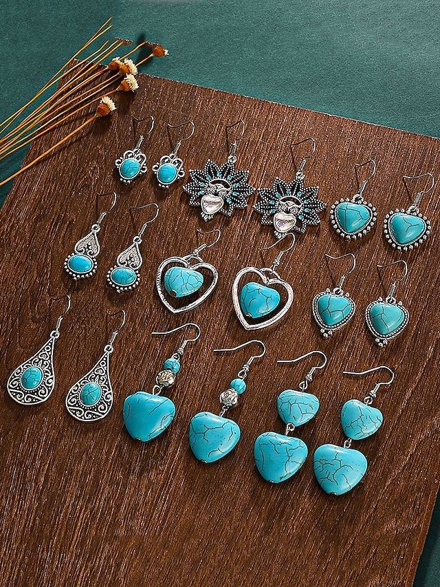 Cercei boho cu inimă turcoaz pentru femei – accente vintage din argint, design cu pietre naturale pentru femei cu spirit liber, ideali pentru festivaluri de muzică, ieșiri casual și cadouri#16803784
