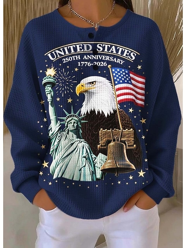 Ziua Independenței Americane Pulover pentru Femei Grafic Elegant Vintage Fashion Mâneci Lungi Guler Crew Guler Rotund Casual Acasă Invitat La Nuntă Butoane Albastru Primăvară#18020944