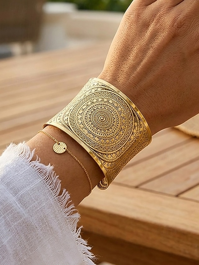 Brățară tip manșetă boemă din aliaj pentru femei, cu model deschis, din aur și argint, pentru vacanță la plajă, ținută casual zilnică, stil resort și bijuterii de vară.#18284640