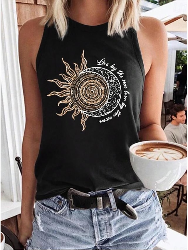 Pentru femei Cămașă Bluză Imprimeu Grafic Boemia Epocă Tropical Fără manșon Stil Nautic Topuri obișnuite Zilnic Negru Gri Vară Primăvară #18484084
