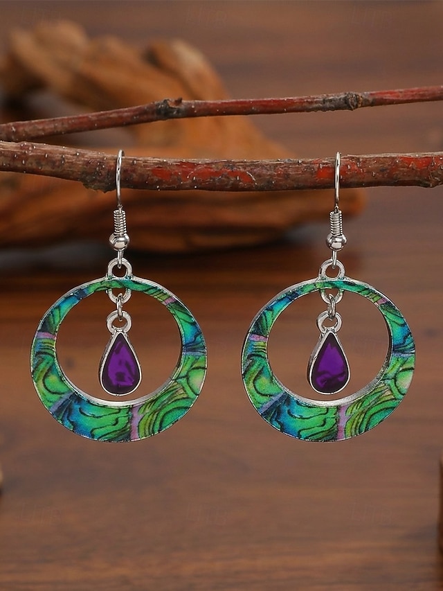 Cercei boemi din aliaj pentru femei cu lacrimă mov, design rotund colorat, perfecți pentru ținute casual zilnice și vacanțe la plajă#19223920