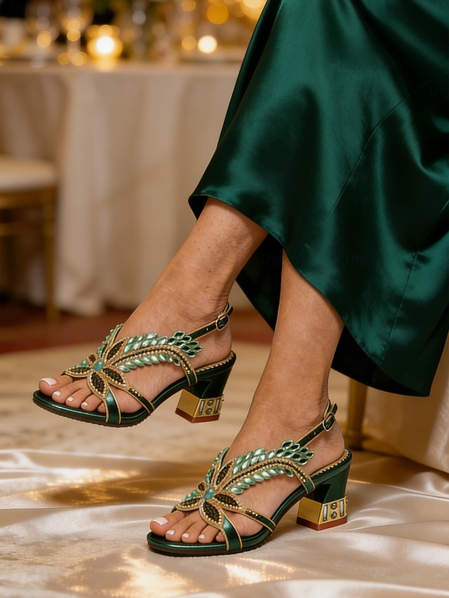 Sandale cu toc verde smarald pentru femei, pantofi eleganti cu vârful deschis pentru mama care participă la o nuntă la modă în oraș #19555883