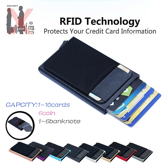 Portofel de afaceri din aluminiu pentru bărbați cu sau fără buzunar pentru bani suport de carduri de identitate blocare RFID portofel metalic subțire punguță pentru monede#9582280