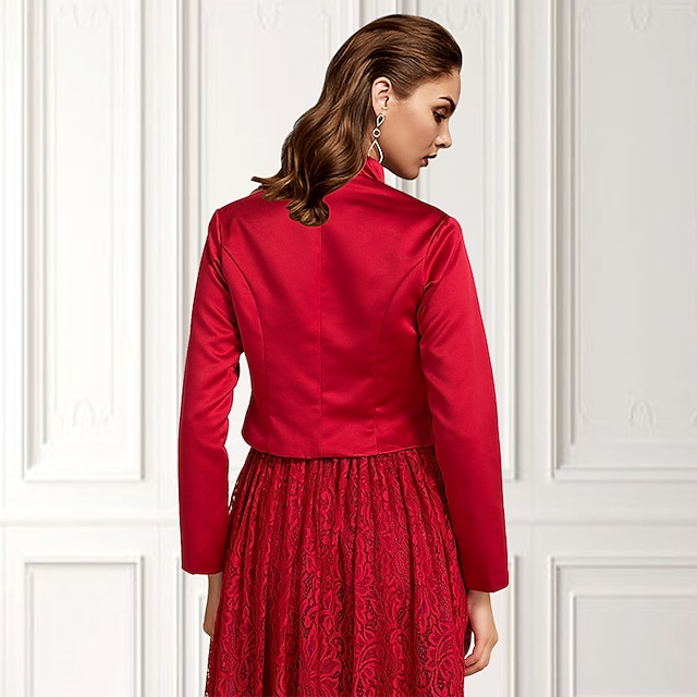 Pachetele Mamei Elegant Paltoane / Jachete Manșon Lung Satin Bolerouri de Nuntă Cu Culoare Pură Pentru Nuntă Primăvara & toamnă #648406