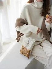 Pentru femei Pulover Casual Culoare solidă Guler Cămașă Nasturi Manșon Lung Topuri obișnuite Tricotat Casă Zilnic Concediu Negru Alb Toamnă Iarnă #19522193