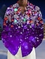 Crăciun Bărbați Fulg zăpadă Lumini De Crăciun  Cămașă Camașă cu nasturi Manșon Lung Moda Casual Concediu Primăvară Toamnă Răsfrânt Imprimare 3D Un buzunar frontal Cămașă de in Roșu-aprins Mov Auriu