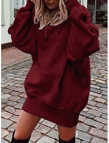 Pentru femei Rochie Mini Rochie de schimb Casual Vacanță Ieșire Potrivire Largă Culoare solidă Manșon Lung Capișon Galben Roșu Vin Albastru piscină Gri Primăvară Toamnă Iarnă