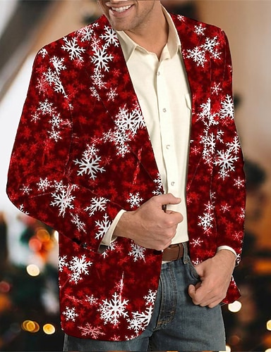 Crăciun bărbați scenă de Crăciun cu imprimeu blazere fulgi de zăpadă haină business blazer cald respirabil îmbrăcăminte confortabilă de lucru la lucru ieșire cu nasturi imprimeu cu buzunare multiplă