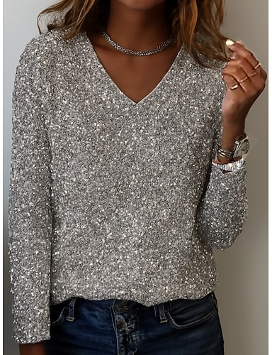 Crăciun Pentru femei Tricou Grafic Om de Zăpadă Epocă Stilat Clasic Manșon Lung În V Topuri obișnuite Zilnic Imprimeu Gri / Roșu Negru + alb + rosu Negru Roșu Vin Roșu-aprins Primăvară Toamnă Iarnă