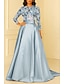 А-силуэт В пол Вечернее платье Бальное платье с верхней юбкой Торжественное платье Элегантный стиль Рукав 3/4 Вырез под горло Свадьба Официальные Стретч-сатин с Плиссировка