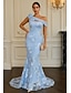 Русалка В пол Вышивка бисером Вечернее платье Платье матери невесты Вечернее платье Торжественное платье Элегантный стиль Винтаж Без рукавов На одно плечо Свадьба Официальные Кружева с