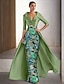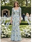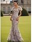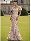 Русалка В пол Вечернее платье Элегантный стиль Блестящая С цветами С короткими рукавами V-образный вырез Для вечеринок Вечеринка в саду Сатин Тюль с Цветочный рисунок Вышитый цветок Вышивка