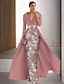 Русалка Со шлейфом средней длины Вечернее платье Бальное платье с верхней юбкой Торжественное платье Элегантный стиль Длинный рукав Иллюзионный декор Официальные Пайетки с Плиссировка Пайетки